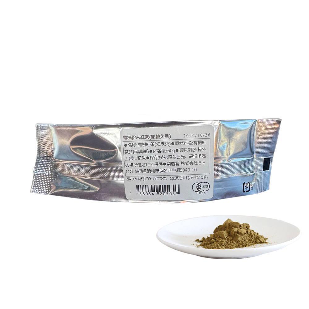 静岡県の有機茶専門農家 「八蔵園」5代目茶師が栽培し、仕上げた静岡県産のヤブキタ葉を低温でじっくり乾燥、酸化発酵をして生まれた和紅茶をまるごと粉末に仕上げました。お湯やミルクに溶かすだけで、日常のティータイム、和紅茶ラテ、焼き菓子やパン生地に練り込みば、香り豊かなアレンジスイーツとしても楽しめます。
